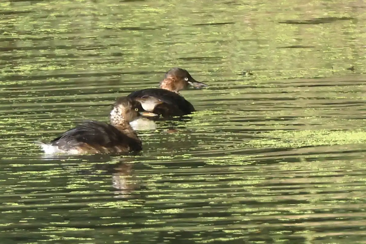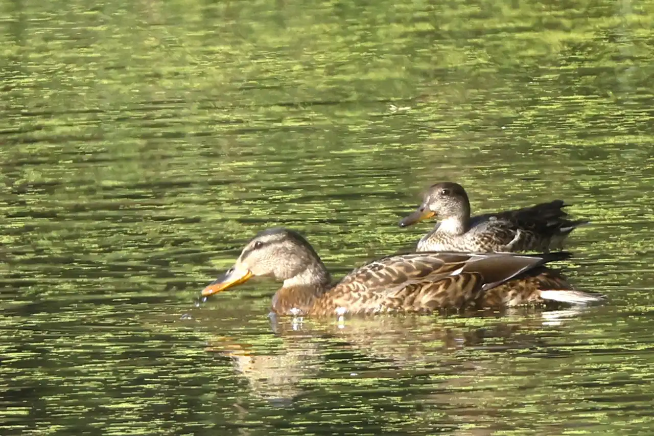 昨日の雨で田んぼがどうなっているのか見に行ってきました。思ったほど水は入っていなかったですね。カラカラ田んぼは、ほとんどの雨水を吸い込んでしまったようです。それとシギチの姿も見つけられませんでした。藤間沼裏の堀にカモ類の群がいましたが、遠くて暗いのではっきりしません。その時に頭上をカモ類が飛んでいきました。堀と同じくカルガモでないのは分かりましたが、種類は特定できませんでした。